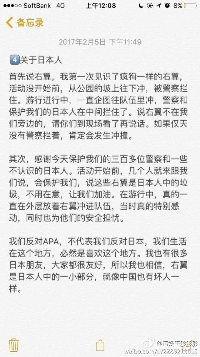 首先,耿直哥必须再次告诉大家,这次经过【正常途径申请后获得批准】的游行活动,非常文明与理性;抗议的对象一直都是APA酒店和极右翼势力,而不没有放“地图炮”针对整个日本。