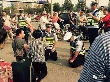(2015年8月,邯郸两名交警与一老人相对而跪,引发热议)