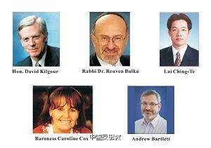 ▲大卫·乔高(上左)和四大分团团长:北美团长鲁文·鲍克,加拿大东部肾脏基金会器官捐赠委员会主席(上中);亚洲团长赖清德,台湾立法委员(上右);欧洲团长卡罗琳·考克斯,英国上议院议员(下左);澳洲团长安德鲁·巴列特,澳大利亚国会参议员(下右)