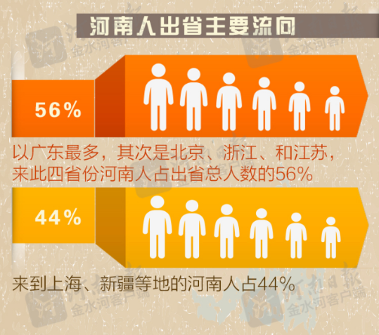 河南位居中部,流向也呈四散状态。根据“十二五”河南人口报告,河南人出省是向南向北也向东。可以这么说,河南人不挑食儿,哪里适合生存去哪里。