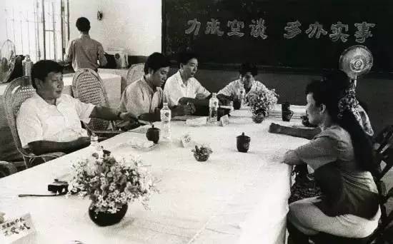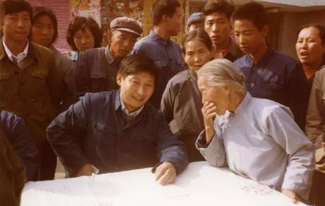 这是1983年,时任河北正定县委书记的习近平(前排居中),临时在大街上摆桌子听取老百姓意见。