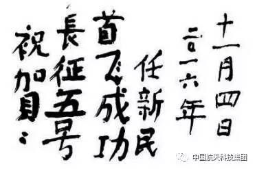 11月3日长征五号运载火箭发射成功后,任新民题字祝贺。