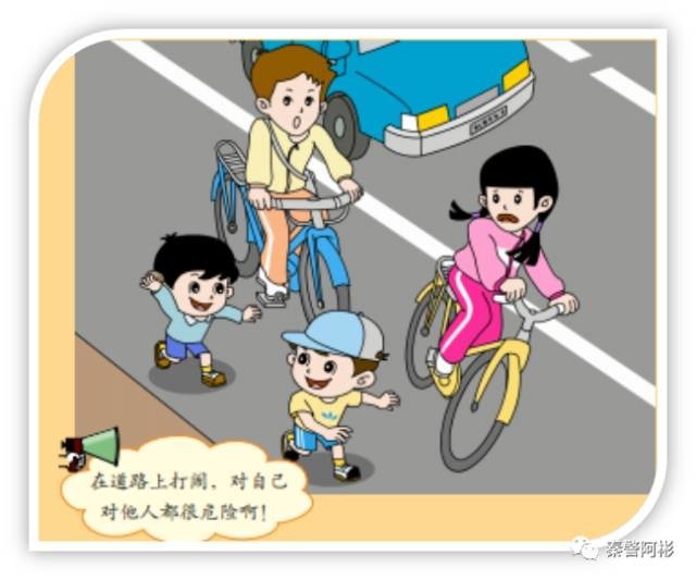 1—3、不要在道路上嬉戏打闹 道路上车多速度快,在车道上嬉戏打闹、坐卧停留非常危险。玩耍、野餐,去公园最安全。
