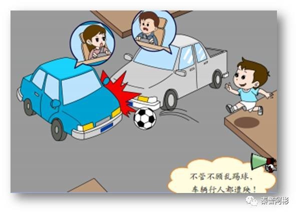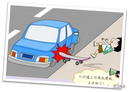 1—8、不要在道路上踢足球、玩滑板、滑旱冰等 在道路上踢球、滑旱冰、玩滑板都是非常危险的行为,因为道路上的车辆行驶速度都非常快,一旦发生冲出马路捡球等紧急情况,司机来不及刹车,后果不堪设想。