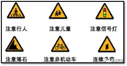 (1)黄色的是警告标志,表示前面可能有危险。