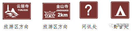 (4)棕色的是旅游区标志,告诉旅游区的方向和距离。