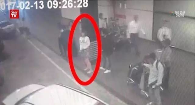 金正男被暗杀时的监控画面。马来西亚媒体认为监控画面中的女子是两位女特工之一。