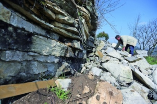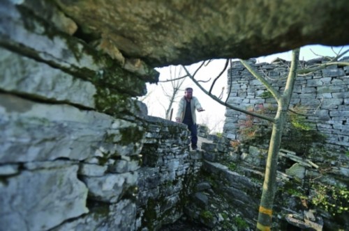 砍开一条比他还高的荆棘刺笼,山顶上大大小小120多间破败石房令他兴奋。魏良利用山顶石条和片石,为自己建起30多平的两间石板房,由此开始古堡计划。