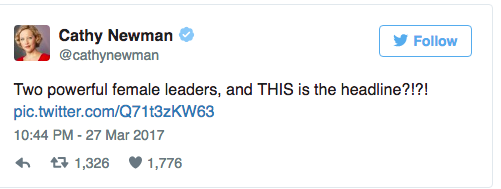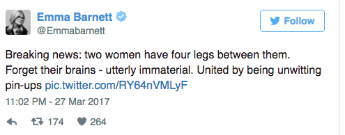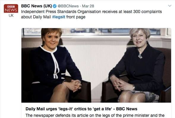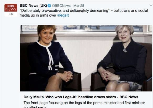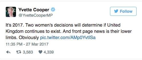 “2017年了…两位女性决定了大英帝国的未来,结果头条新闻在讨论她们的大腿??”