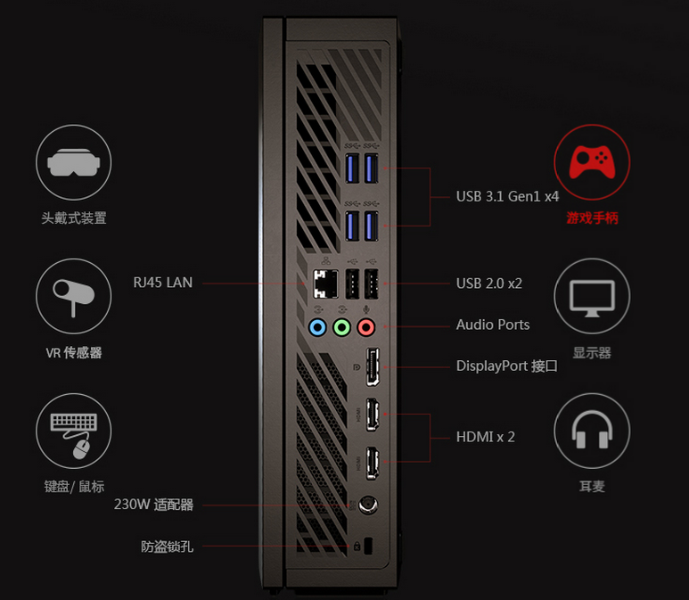 飞行堡垒S M80是一款仅有5L大小,2.2Kg重量的微型游戏台式主机,其搭载了第七代Kabylake处理器、“10”力显卡,采用了高能效的散热系统,并且配备了丰富的接口,可以为游戏提供充足的动力支持,同时可适配VR,为玩家提供虚拟现实体验。
