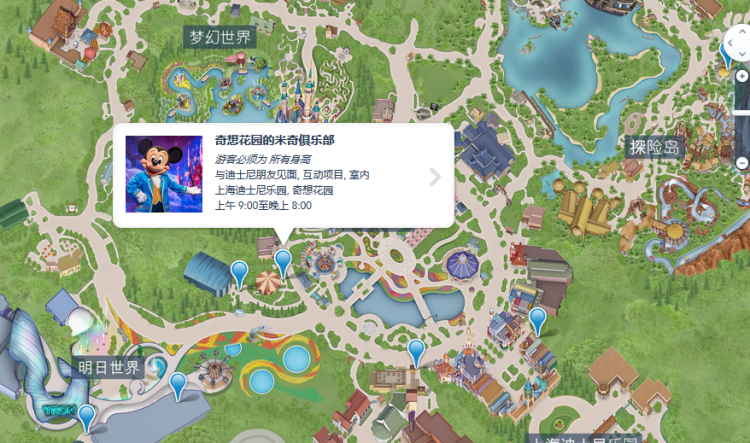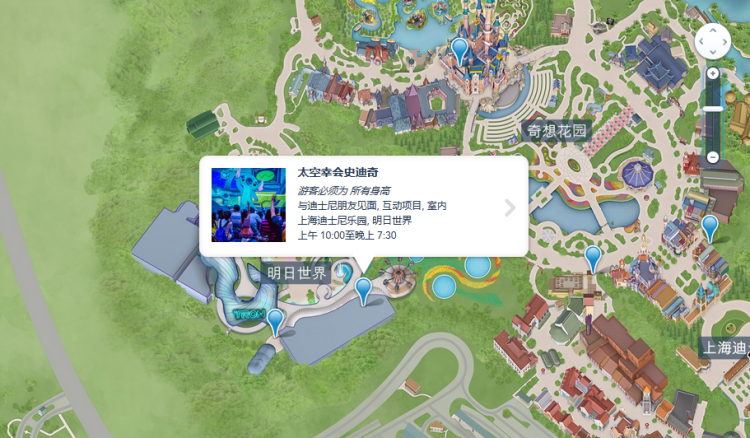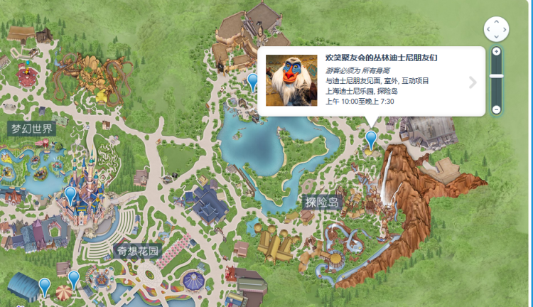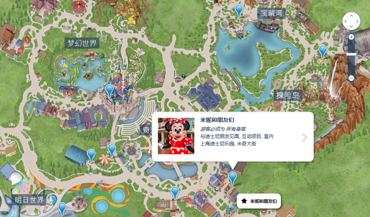 小编前几年去美国和香港的迪士尼玩儿时,几乎在每个区域的任何时段都能看到不同的卡通形象和游客互动合影玩游戏,但是在上海迪士尼小编没有看到和游客互动的卡通人偶,被其他游客告知在早上进园时奇想花园周围(城堡周围)有小熊维尼等人物会出现配合合影,所以想要在室外活捉自己喜爱的人偶时需要咨询工作人员它们出现的地点和时间。