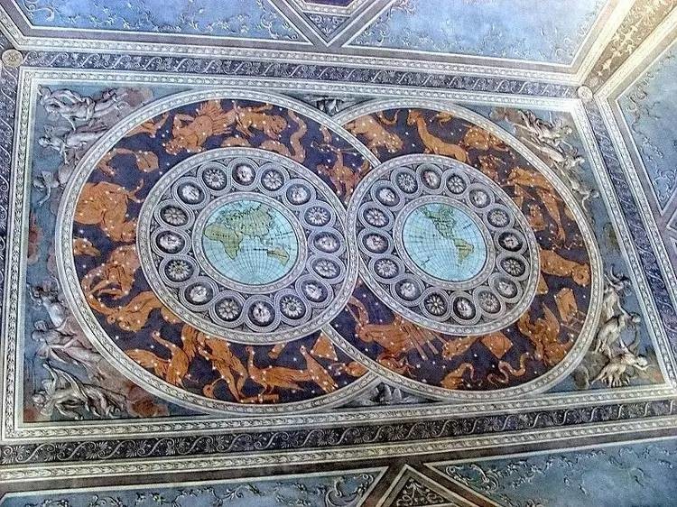 宫顶装饰之一:这座始建于1752年的宫殿的房顶上,出现了相当准确的世界地图。