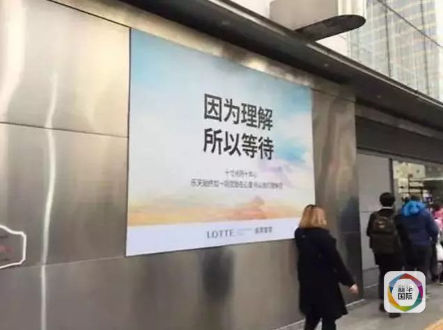 3月24日起,首尔明洞的乐天百货和7-ELEVEN便利店,以及乐天百货蚕室店等商圈,用中文书写的“因为理解,所以等待”的宣传广告随处可见。