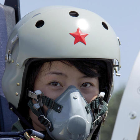 2009年8月30日,河北,训练中的余旭。余旭在2005年考入中国人民解放军空军航空大学,成为第八批女飞行学员,2009年4月成为北空某部飞行员。