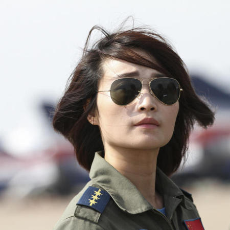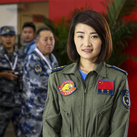 2016年11月1日,广东珠海,2016年珠海航展,八一飞行表演队见面会中的余旭。余旭代号为“金孔雀”,她是我国具备三代战机飞行资格的4名女飞行员之一。