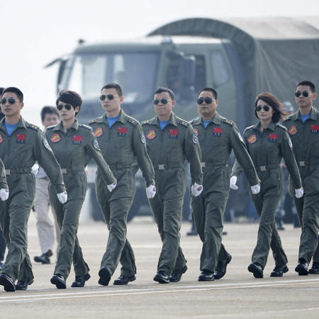2009年9月14日,女飞行员余旭(右二)与队友相伴刻苦训练,成为阅兵村里的明星。2009年10月1日,她参加了中华人民共和国国庆60周年阅兵,担任教-8梯队三中队右二僚机。