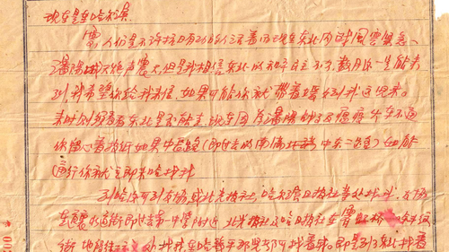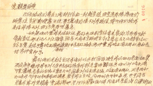 “雯、亲爱的雯,今天上午接到了敬公父亲的三封信,使我喜泪交接,想不到年迈的父亲,现在还健在人间,所痛心和悲哀的,是可爱的母亲(人名)已经辞别人间,永远也不能再见了。”