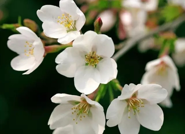 如果树枝有横纹,花瓣顶端有个豁口,花一簇一簇的,那一定是樱花。