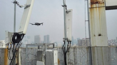 有架线的施工人员对环球网无人机频道表示:他们架线前会先送过去一根牵拉电线的引线,这个引线很轻。而他们的架线距离很短、只需要越过牌楼等障碍物,用这些消费级无人机就能吊起。