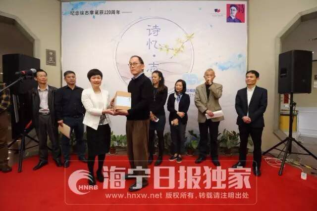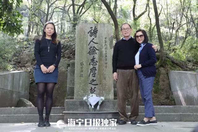 今天,徐志摩的长孙徐善曾(徐善曾是徐志摩与张幼仪的儿子徐积锴之子)带着妻子和女儿来到海宁,参加“2017第五届中国(海宁)·徐志摩微诗歌大赛”启动仪式。