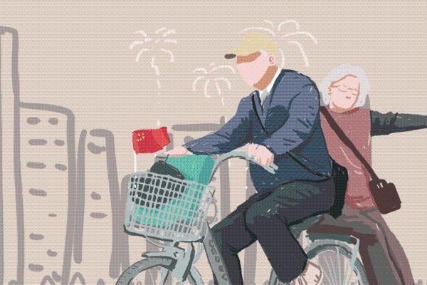 后来,为了怕老伴摔着,潘老便把前后座改成了手牵手。