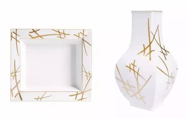 Gold 系列是经典系列,瓷器上画有大大小小的金色商标标志,风格简约。上面这个盘子是 125 欧元,花瓶是 275 欧元,算是价位亲民的。