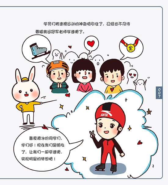 张虹:因为滑冰会有很多动作的细节,通过漫画的形式展现比较直观。同时,漫画的形式让各个年龄段的人都能接受这本书,青少年看起来不会觉得照本宣科,成年人看起来也会觉得有趣。