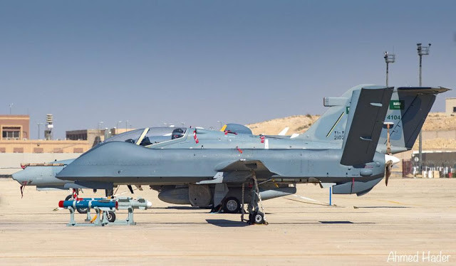 图片:穆罕默德•本•萨尔曼亲王视察王国北部的无人机部队,这是一架意大利“隼”式小型无人侦察机。