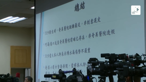 詹启贤的说明会准备得相当充分,他拿出“3·19枪击案调查委员会”所作的调查报告、医院的监控截图和当年的新闻稿等逐一说明。詹启贤援引相关报告记录表示,奇美医院是距离案发地点最近的医院,而非事先选定。医院事先没有得到任何消息,詹当时甚至还在理发店理发。最为关键的证据是奇美医院在案发后那几个小时的监控录像截图,清楚地记录了陈水扁步入医院后接受治疗的全过程。詹启贤据此力证,陈水扁的伤口在进医院前就已经存在,医院也压根没机会人造伤口。至于夸大伤情拉抬选情的指责,詹也拿出了当年记者会的新闻稿,证明自己当时说得很清楚:陈水扁是自行步入医院,伤势并不严重。