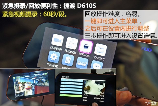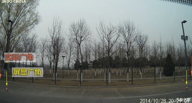 还有个小细节值得一提:测试的过程中我们发现,捷渡的产品,屏显的视角和拷贝出来的实际摄录文件视角有一定偏差,实际的角度要比屏显看到的大一点点,也就是几度的范围,不知道为何会出现这种情况,不过这倒是不影响我们对它的评价和最终结果。