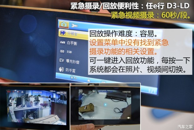 这里需要额外说一下,当前后视镜款行车记录仪普遍都开始配备包括后摄像头在内的很多辅助功能,但我们始终认为,作为一款记录仪,它的本职工作:行车记录是最为重要的,其它辅助功能我们并不会过多进行测试或介绍。而任e行除了这款399元的产品外,再往上价格的产品均附加了很多辅助功能,摄录单元是一样的,为了体现测试初衷,我们选择了这款399元的产品。