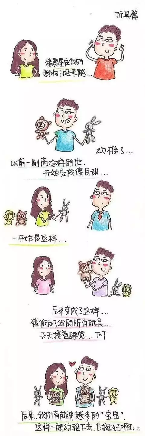 她用漫画记录了他们一起走过的风风雨雨和磕磕绊绊,尽管两个人的恋爱经历都为0,但他们用自己的方式探索出了一种爱情的模式。