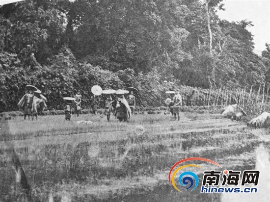 1931年和1932年,德国学者史图博两次来海南考察,在他所著的《海南岛黎族志》一书中,有多帧当时实地拍摄的斗笠蓑衣照片,尤其是黎族妇女头戴斗笠披蓑衣在田地里插秧劳动的画面,是难得珍贵的影像记录。