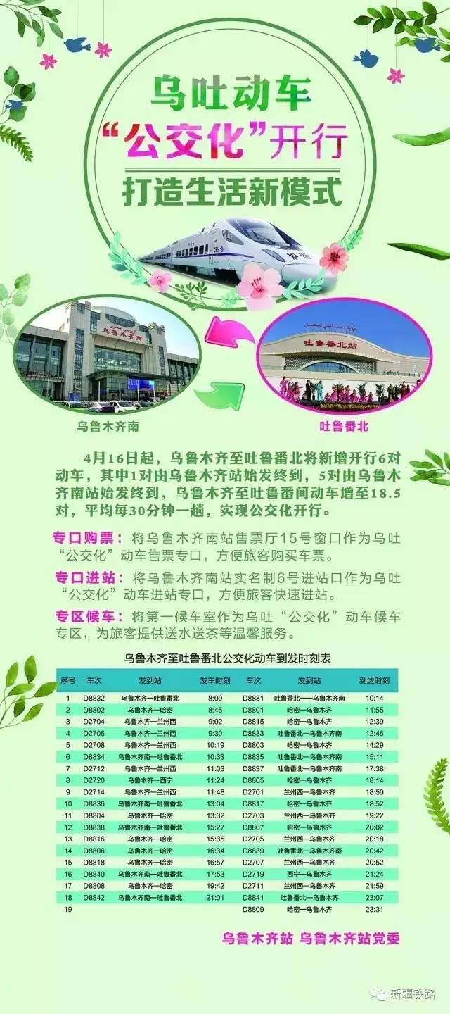 7556/7 7558/5次、5818/9 5820/17次2对客车,由原来的乌鲁木齐南站始发、终到,调整为乌鲁木齐站始发、终到。