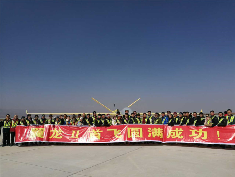(翼龙研制保障团队庆祝翼龙Ⅱ无人机首飞成功。)