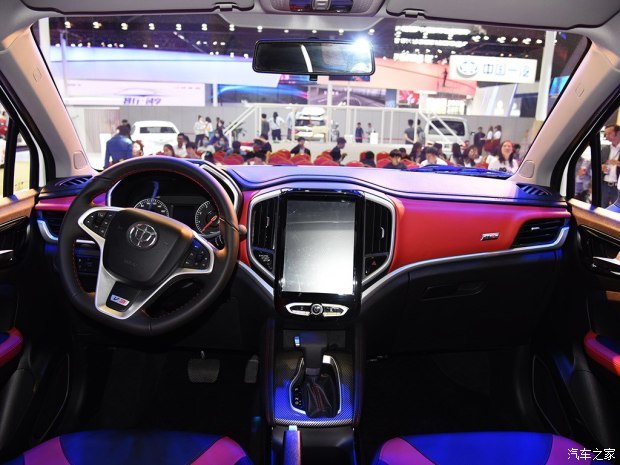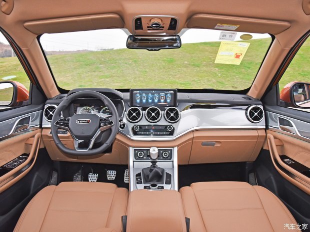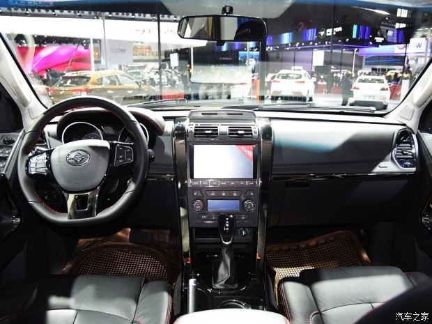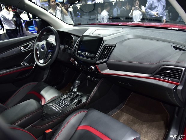 内饰方面,新车中控台的造型设计较为前卫,并采用了一块10英寸的触控屏。全液晶仪表盘的效果较为显著,三辐式方向盘采用平底式设计,并集成了多功能按键。配置方面,野马T80具备一键启动、电子手刹、自动驻车、自动空调及全景天窗等.