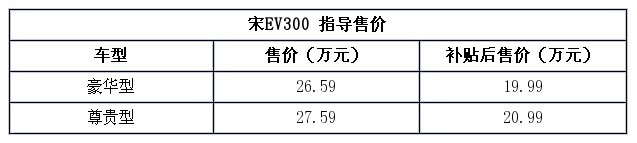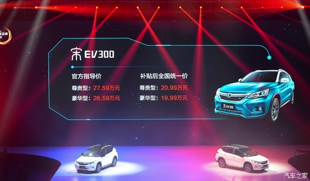 售价:宋DM补贴后售17.99-20.99万元;宋EV300补贴后售19.99-20.99万元