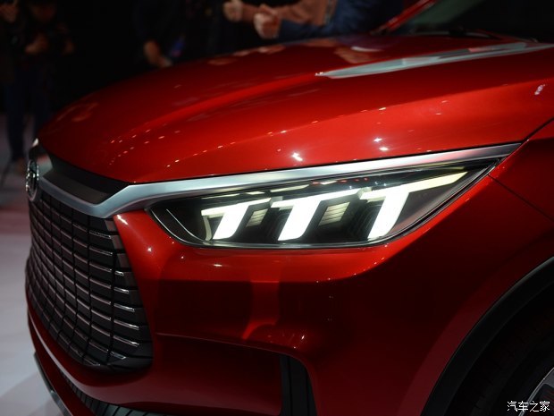比亚迪宋七座版前脸的进气格栅尺寸非常大,再配以横向镀铬装饰条,看起来非常霸气。新车大灯也非常具有特点,矩阵型的LED整齐的排列在大灯内,并与前进气格栅很好的融合在一起。
