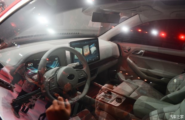 王朝概念车在内饰部分的设计不够惊艳但足够未来,概念车仅在挡把周围布置有少量物理按键,一切从简的风格意味着车内大部分功能控制均由中控台搭载的大尺寸多媒体显示屏和全液晶数字仪表来完成。同时后排乘客也将拥有独立的多媒体显示屏,一家人出游时不必担心路途遥远、旅程乏味,王朝概念车在驾乘舒适性方面的考量还是比较到位的。