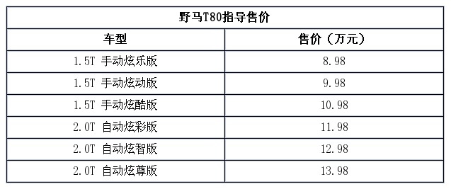 上市:野马T80