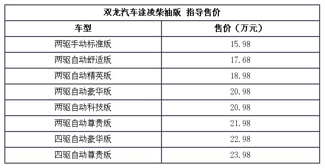 上市:双龙途凌柴油版