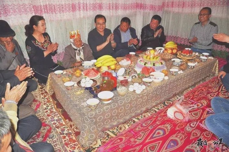 114岁高龄的帕台西汗·苏皮老人是“阿克苏长寿之星”,也是自治区地矿局第九地质大队党委书记杜凯的结对亲戚亚森·买托乎提的母亲。得知老人要过生日,杜凯专程定制生日蛋糕,并在上面写下对老人的祝福,和工作队队员们一起来到亲戚家中为老人庆生。