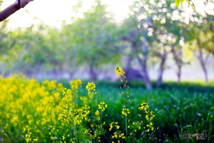 晨曦中的田野美丽极了。放眼望去,油菜花金光闪闪,田野像是被铺上了绿色的丝毯,露珠在阳光照耀下变得七彩斑斓。