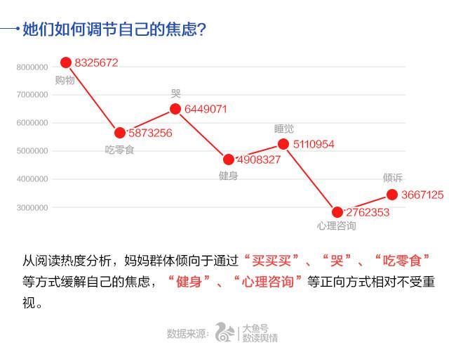有意思的是,尽管这些妈妈们焦虑的因素各不相同,但她们的缓解方式却心照不宣——购物。除此之外,哭与吃零食也是她们调节焦虑的主要方式。但是这些方式显然只有短时效果,一些正向方式,如健身、心理咨询等,在目前还未受到妈妈们足够多的关注。