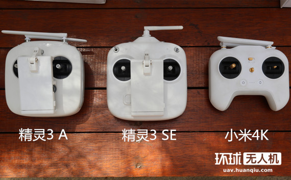 精灵3 SE与精灵 3A差别最大的是遥控器,精灵3A双天线,而精灵3 SE单天线。精灵 3A使用的是大疆早期的Lightbridge数字高清图传,而精灵3SE则换成了wifi图传。
