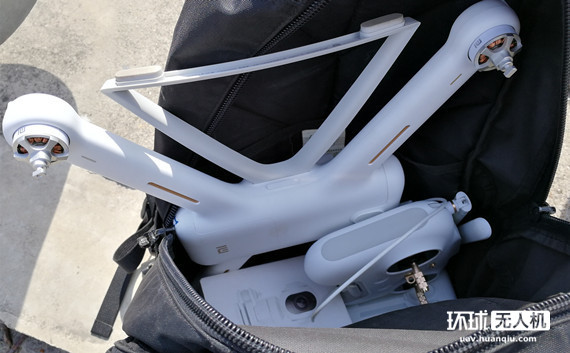小米无人机另一个巨大的后发优势是机身可折叠、云台可拆卸。收纳状态的小米无人机能塞进普通背包里很方便。