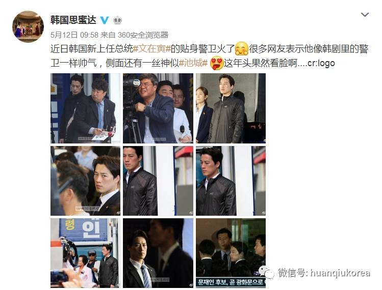 这位相貌出众的总统贴身保镖今年36岁,名叫崔英载,韩国特种部队军官出身。除了中国微博炸了之外,每日邮报英国电讯报等外媒都惊叹:“哎呀,新上任总统的风头都被保镖抢光啦”!此处求总统内心阴影面积