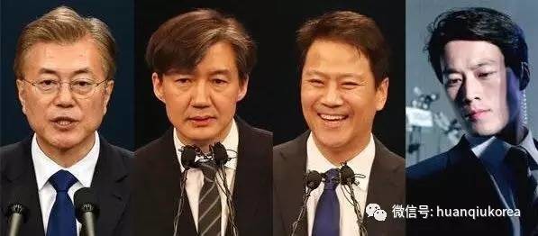 除了上面讲到的保镖崔英载(右一),青瓦台秘书长任钟皙(右二),民政事务首席秘书曹国(左二),以及新上任的总统本人(左一)都被认为是颜值实力兼具的大帅哥,于是被民众戏称为“青瓦台F4”。
