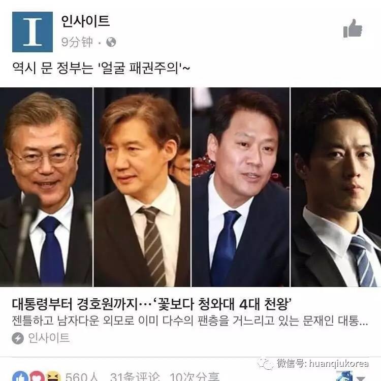 当看见“青瓦台F4”的时候蜜达君就仅仅花痴了一波,没想到某外媒却提出了个很有意思的观点:文在寅其实是故意的!通过选拔外形俊俏的官员和专业人员,来打造一个更引人注目、独具魅力的公众形象!