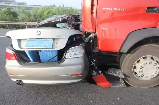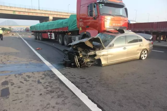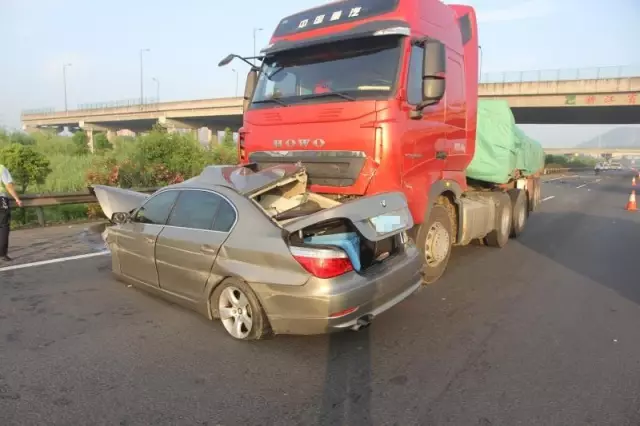 根据半挂车司机说,当时他正行驶在四车道上,宝马车突然从左侧蹿出来,他因为避让不及,一头撞了上去。